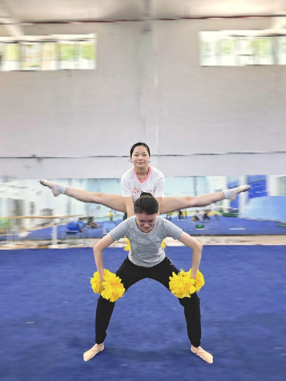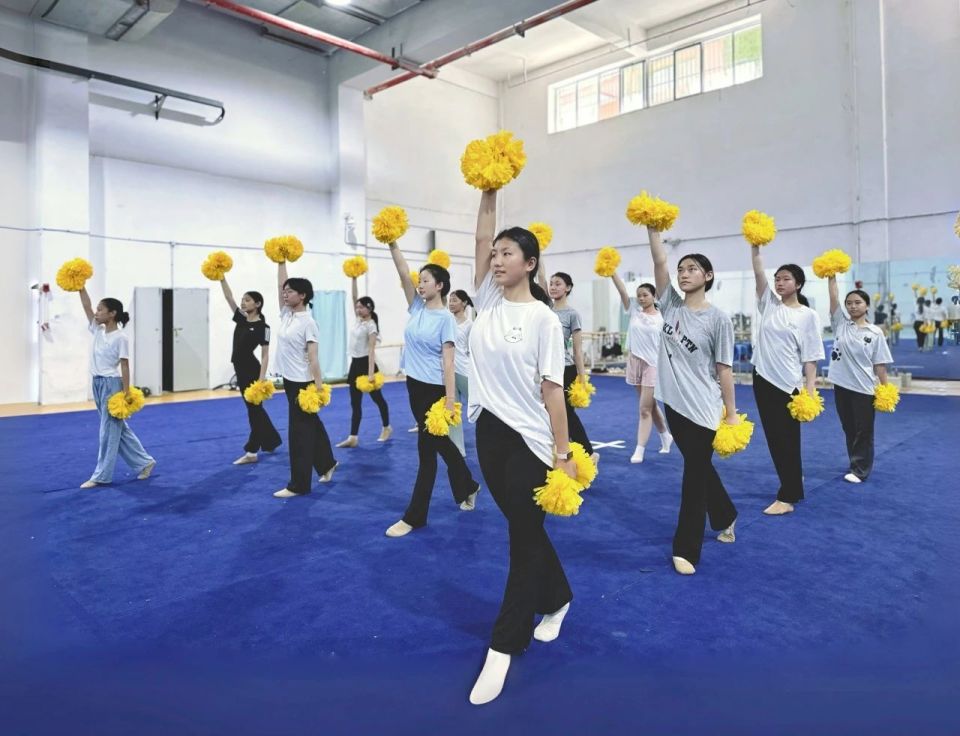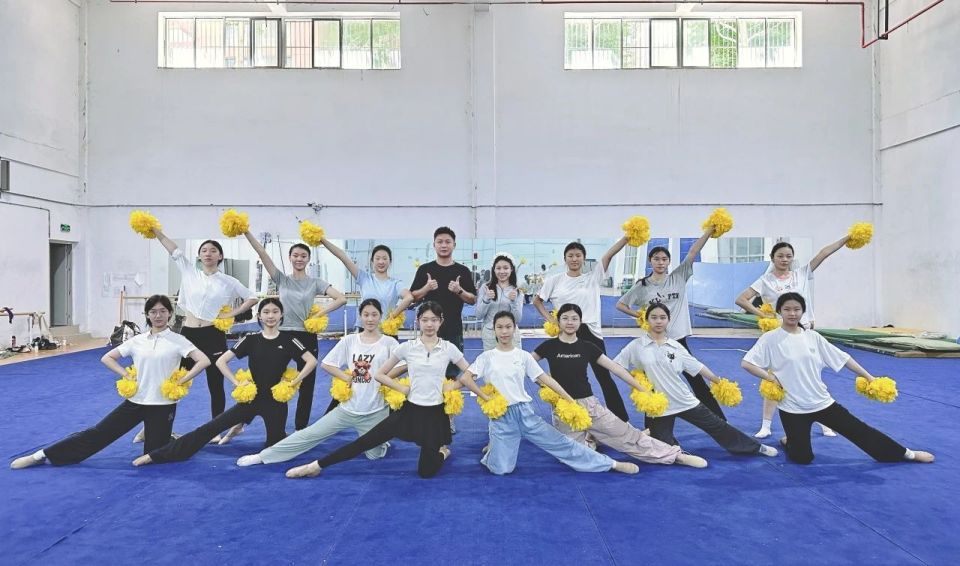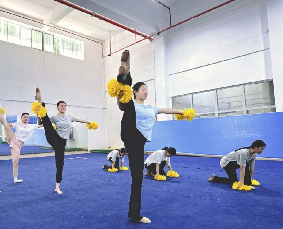 由于队伍召集时正处于暑假期间,人员难以聚齐。接到洪山区教育局通知,该校啦啦操队周琪老师与青菱小学李鑫老师于一天内迅速集结关山中学、马房山中学及英格中学的精锐啦啦操队员共19名,涵盖初中至高中学段;同时,针对仅有的7天备战期,制定日均4小时的“技巧+体能+合练”强化课程,以极强的专业素养扛起了为洪山队助威的重任。